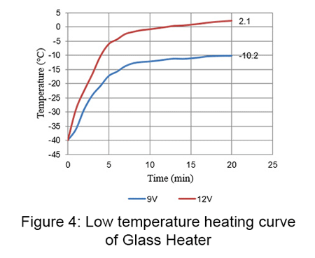 表2:-40°C下9V / 12V的帶玻璃加熱器的TFT LCD模塊的結果