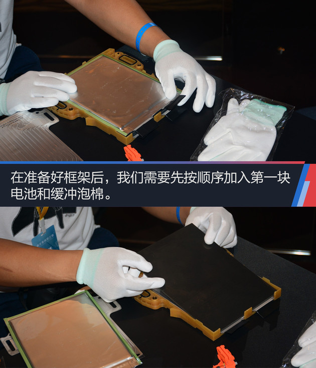 隨后,我們還得到了自己動手組裝電池組的機會。此次的電池單元來源于即將上市的別克VELITE 6的插電式混合動力電池包。我們將在工程師的指導下進行簡單的安裝。