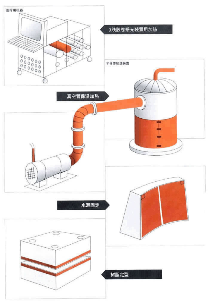 (3)極好的柔軟性,可直接附著于被加熱設備上,接觸良好,升溫均勻。