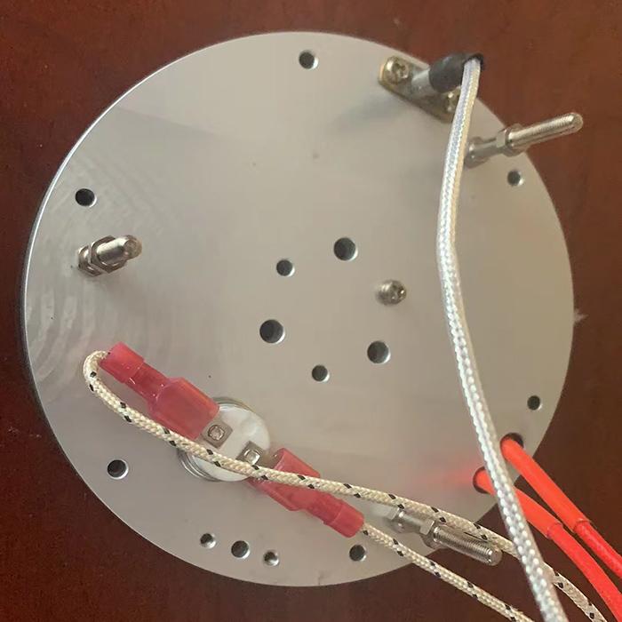 9、安裝和接線方便。導線可用鉚接的方法固定在元件上,元件可用粘貼也可用機械方法固定在受熱體上。